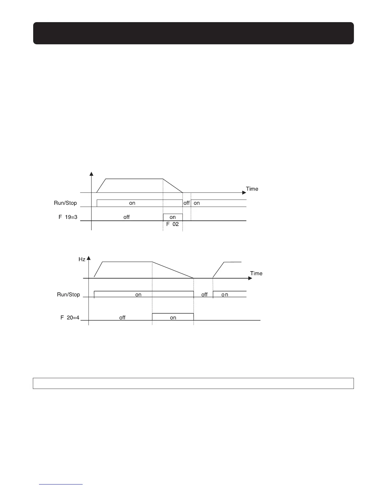 again (F_10 = 1) or press the RUN key (F_10 = 0), the inverter will restart from the original starting frequency.
