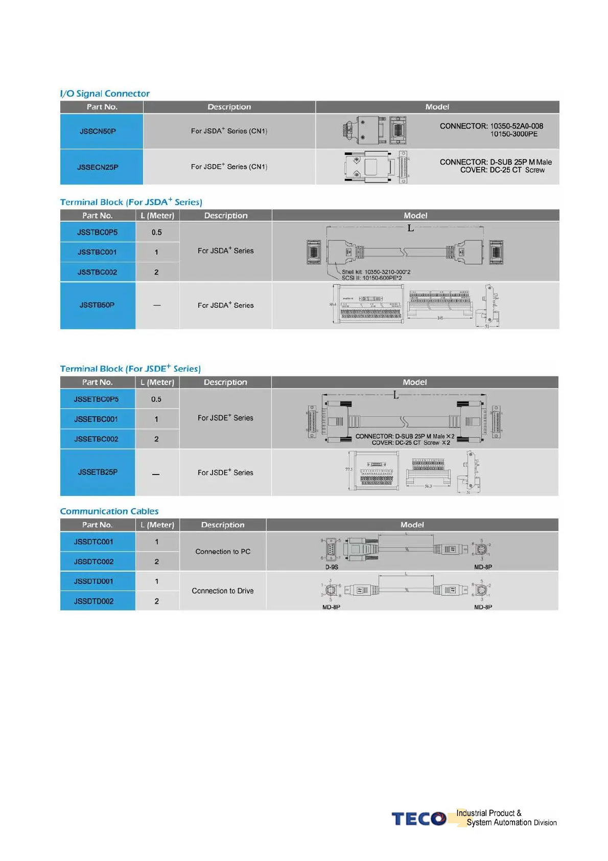 TECO JSDEP Series - Appendix A: Peripheral for Servo motors; I;O and Communication Cables