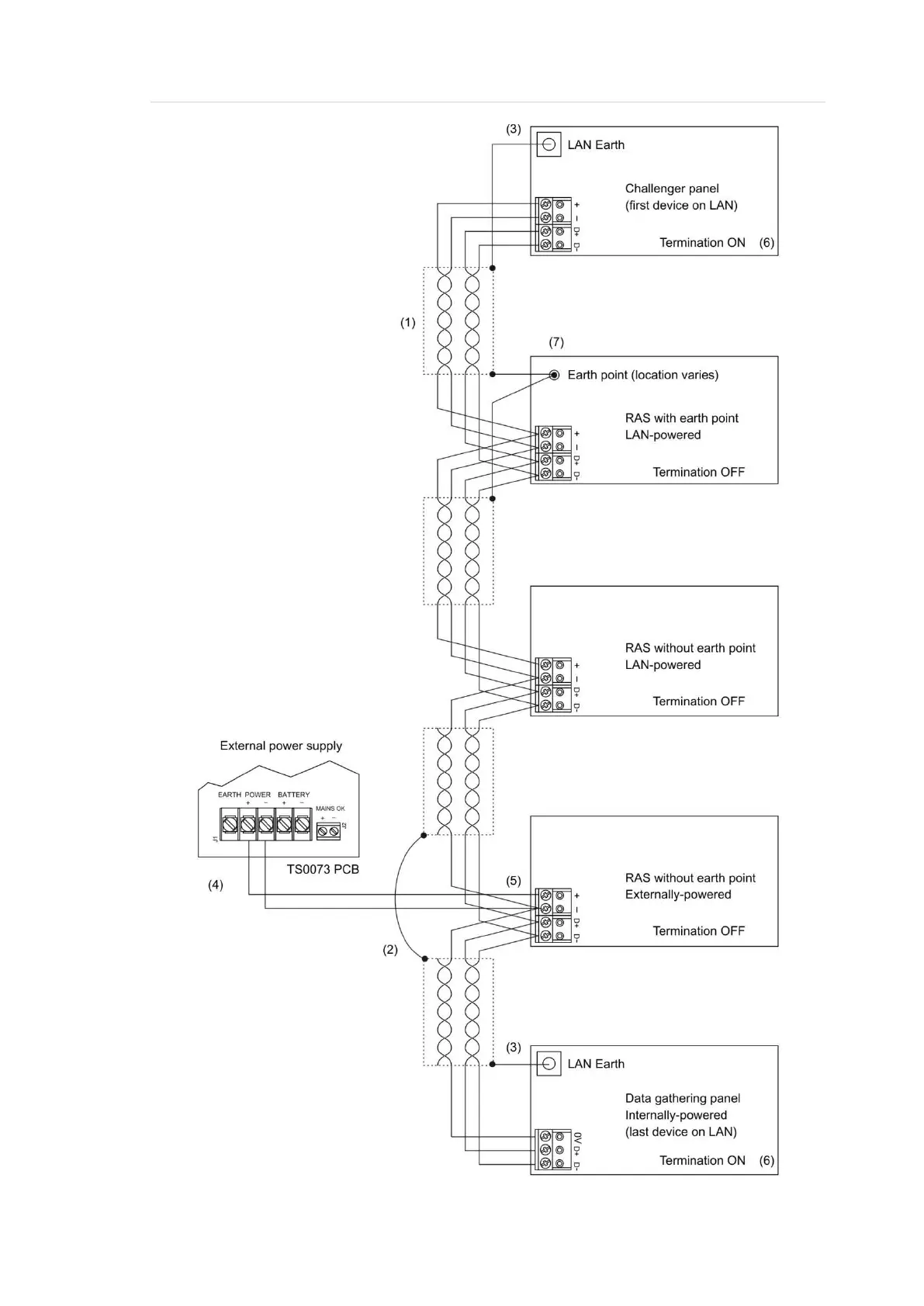 Figure 1: RS-485 LAN 1 or LAN 2 and earth system block diagram