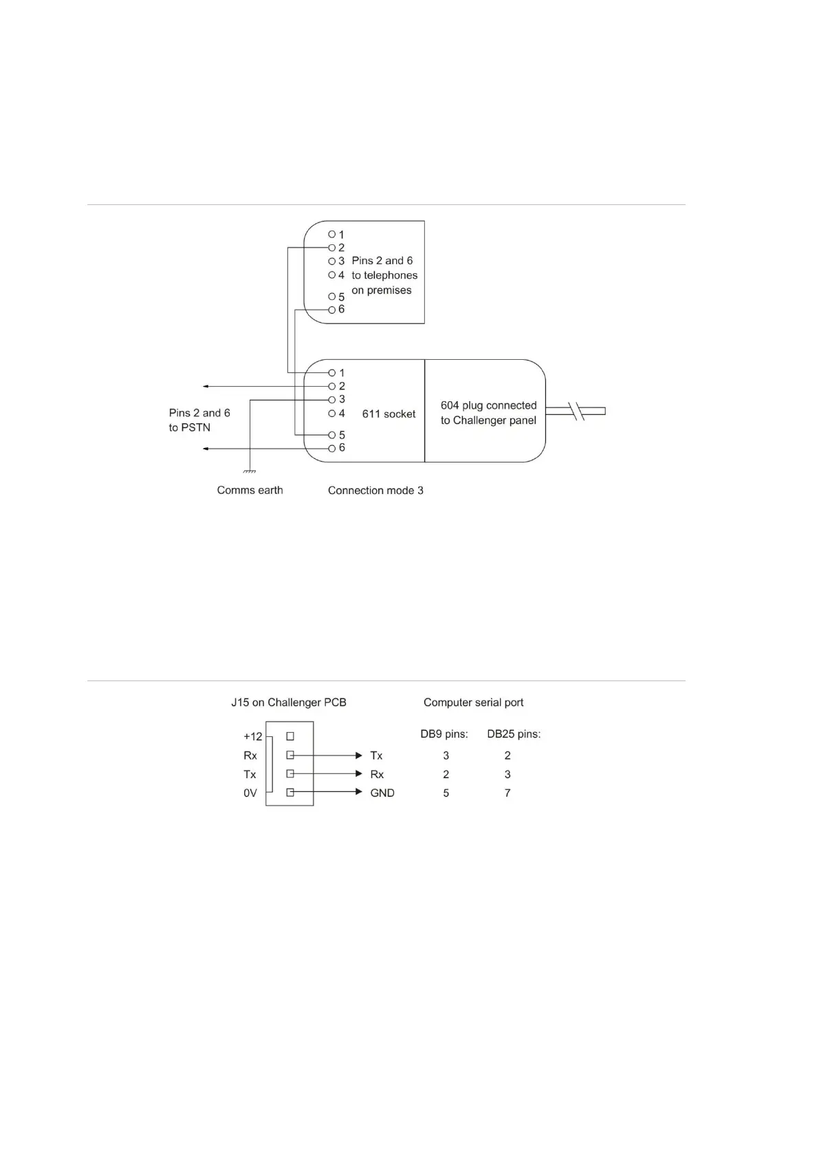 Figure 11: Line connections for 611 socket for dialler reporting formats
