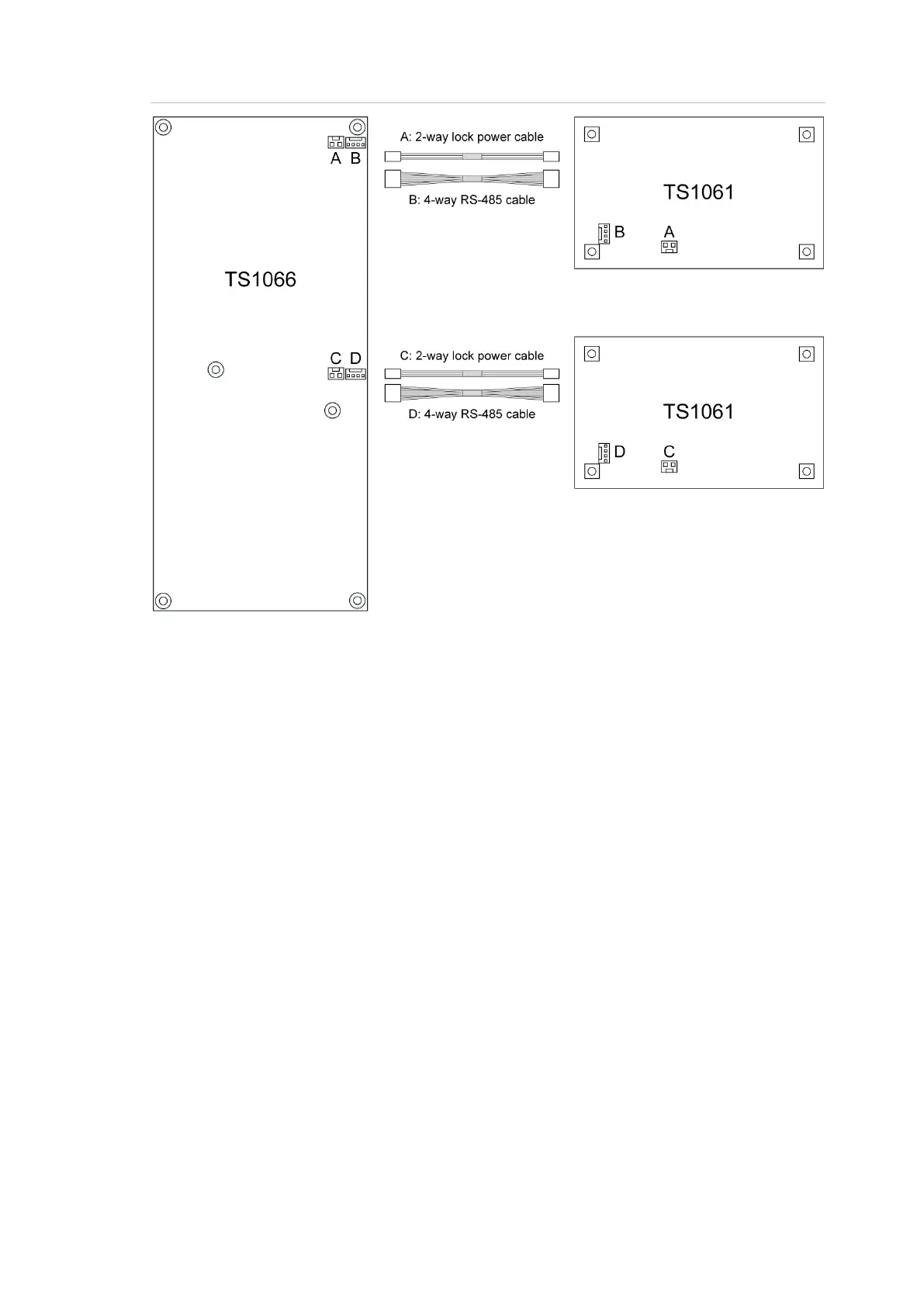Figure 4: Example TS1066 to TS1061 cable connections for RS-485 and lock power