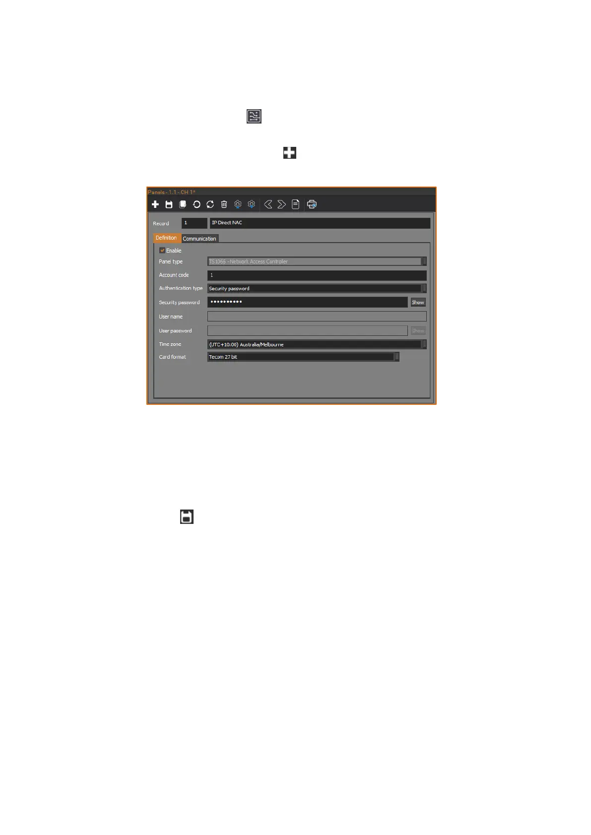 3. Set the Panel type to be TS1066 - Network Access Controller.