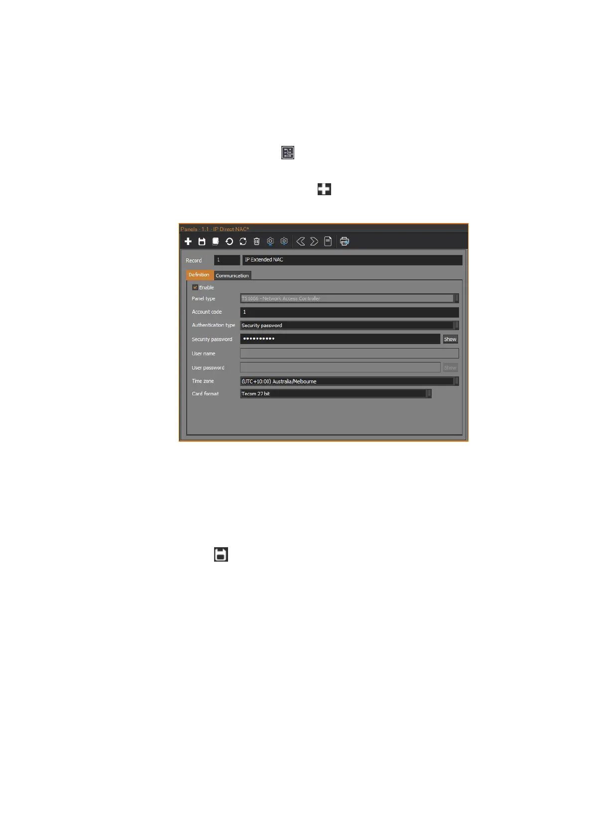 8. Click the Save button in the toolbar to save the NAC panel record.