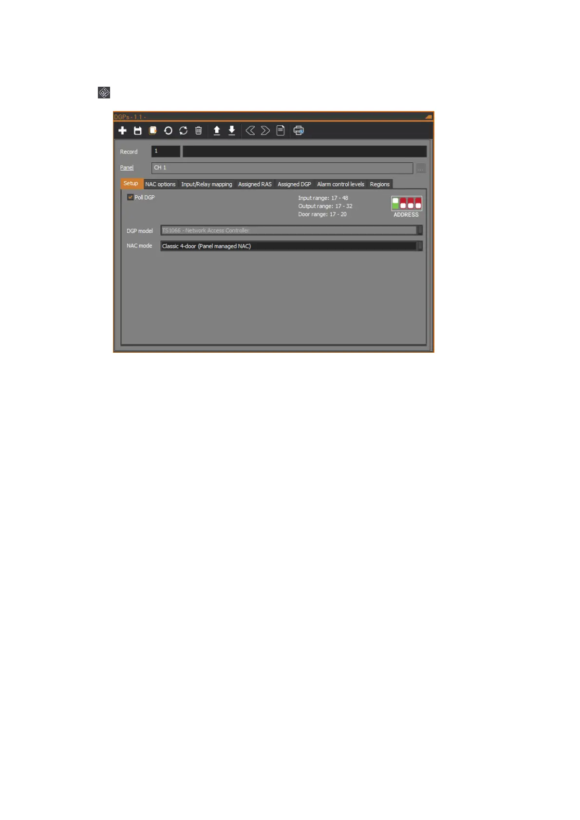 The Network Access Controller is programmed via the DGPs form. Click the
