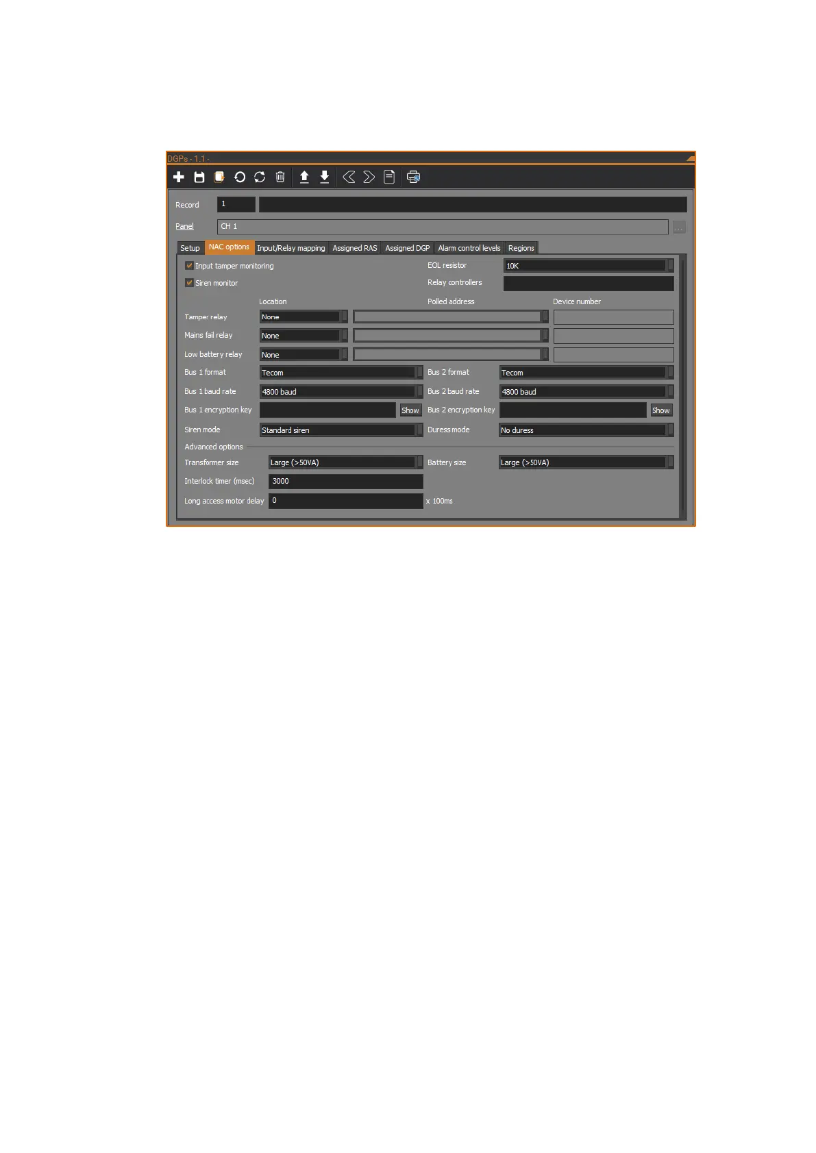 The NAC’s general controller options can be programmed on the NAC options