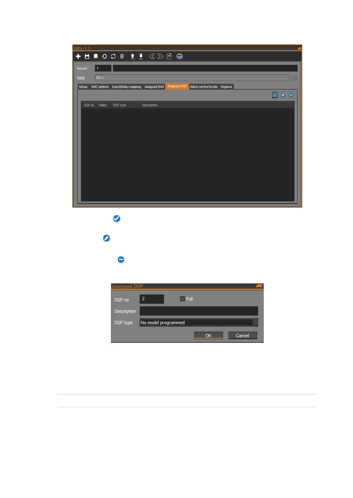 The following figure shows the Assigned DGP dialog: