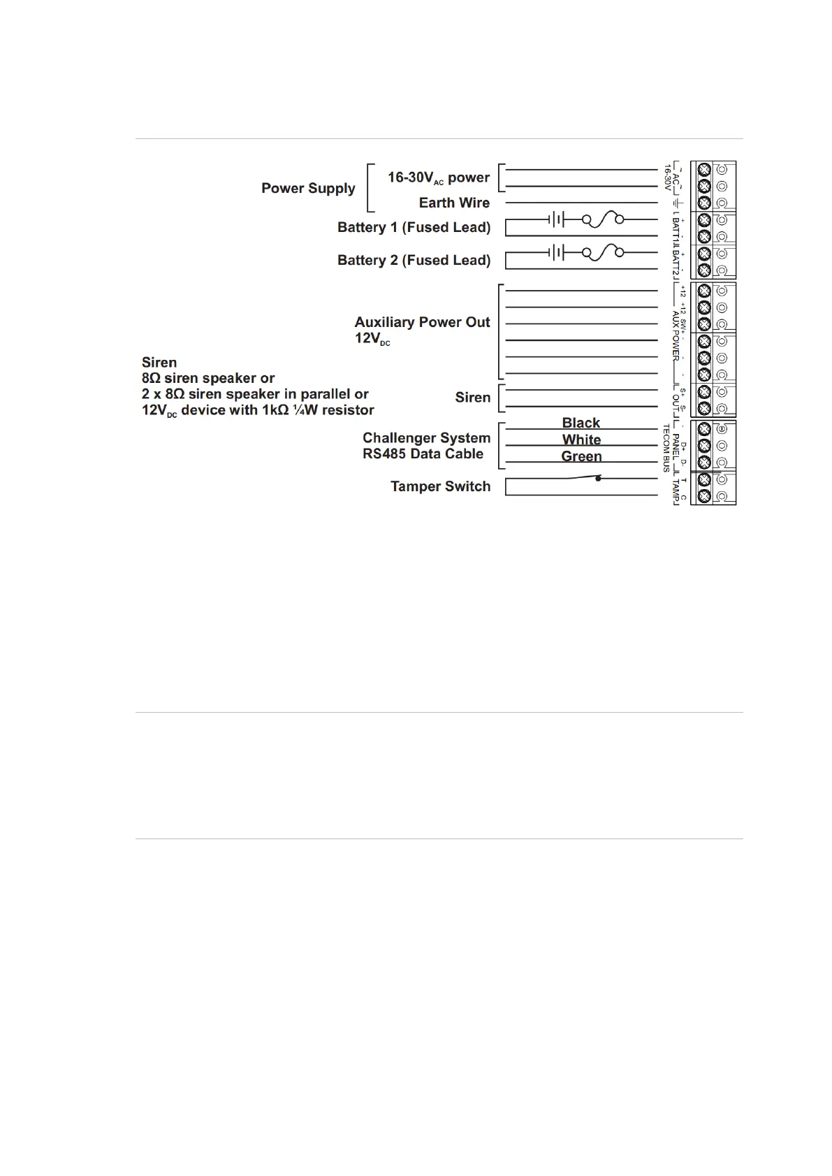 AC power input for the NAC is provided via the two unpolarised AC terminals.