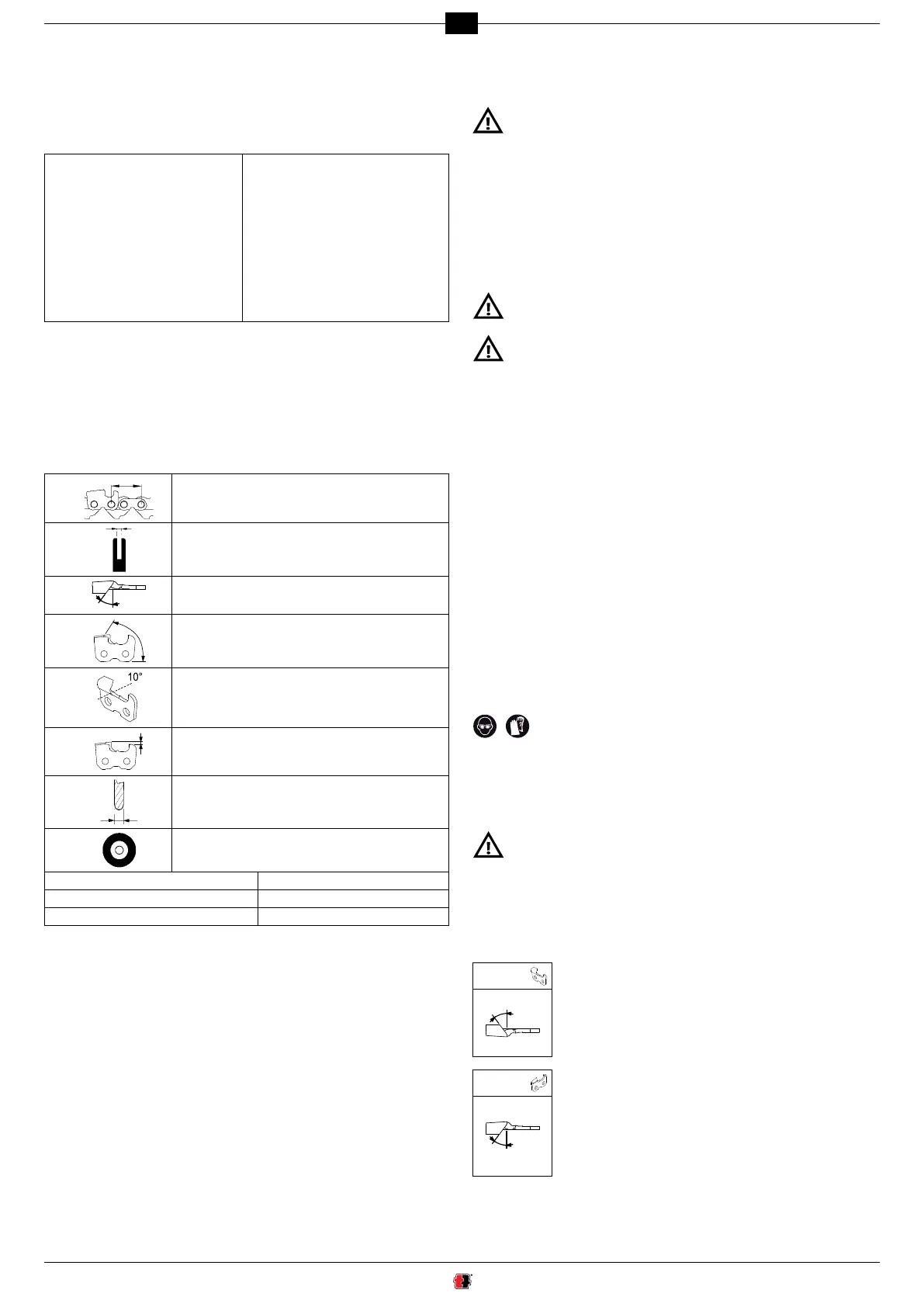 - stosować ściernicę odpowiadającą typowi łańcucha do ostrzenia, konsultując tabelę