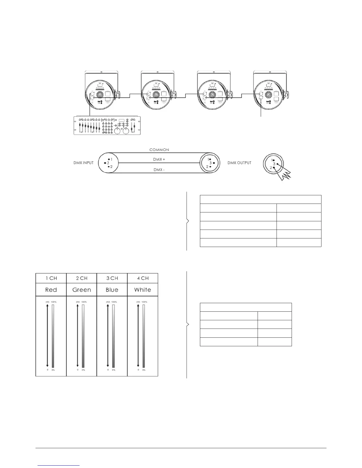 1/4 W entre el pin 2 (DMX-) y el pin 3 (DMX+) de la última unidad.