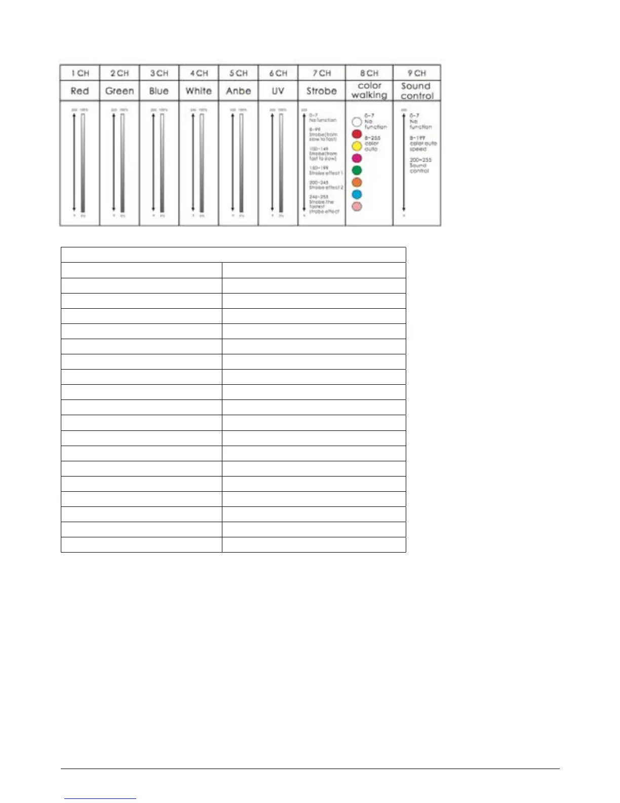 100-149 Strobe (from fast to slow) 100-149 Estrobo (velocidad decreciente)