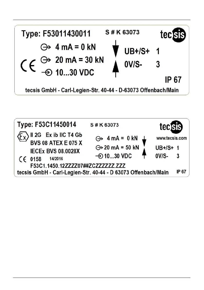 Fig. 1 Name plate Standardversion - 1x connecting plug output signal 4…20 mA