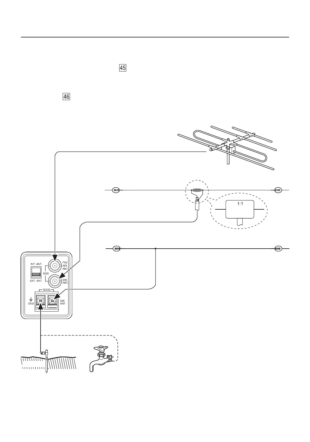 plug it into the red “SW ANT.” socket . Position the wire above ground and make sure that it runs in a