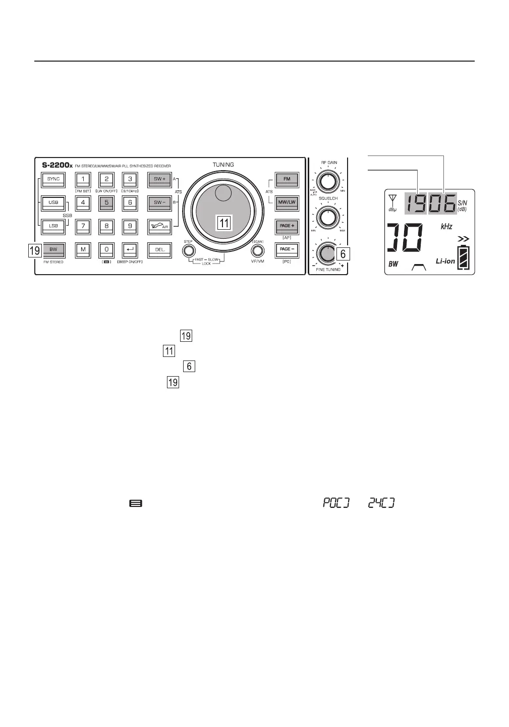 2) Press and hold the [ BW ] button until the signal strength value flashes.