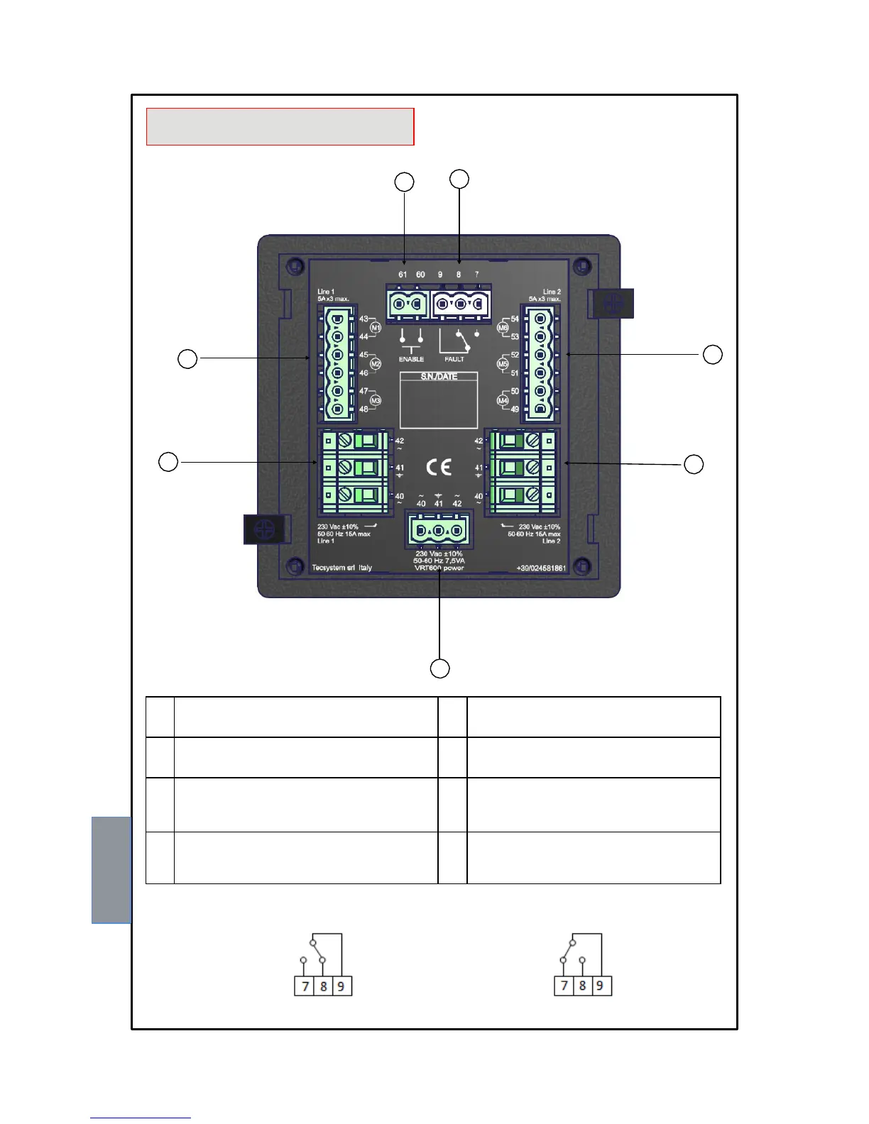 FAULT 8-9 NC: ALARM FAULT OR POWER OFF FAULT 7-9: NC POWER ON