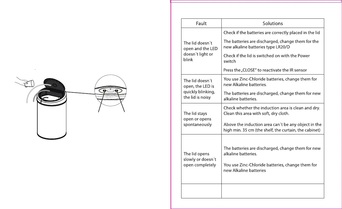After your hand or debris moves away, its lid closes in several seconds.Press the