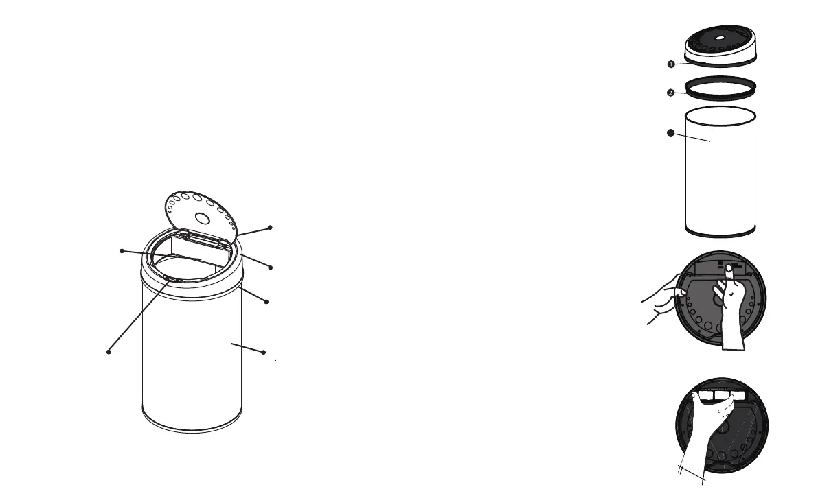 aproximadamente 20 cm del sensor de infrarrojos la tapa del cubo se abre. Después
