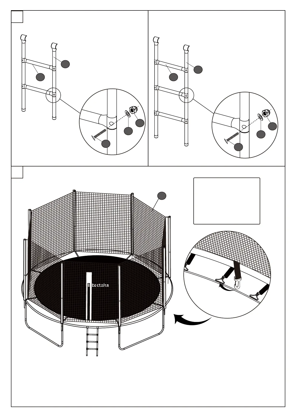 Bevor Sie das Trampolin testen, lesen Sie bitte den Abschnitt „Ausprobieren des Trampolins“.