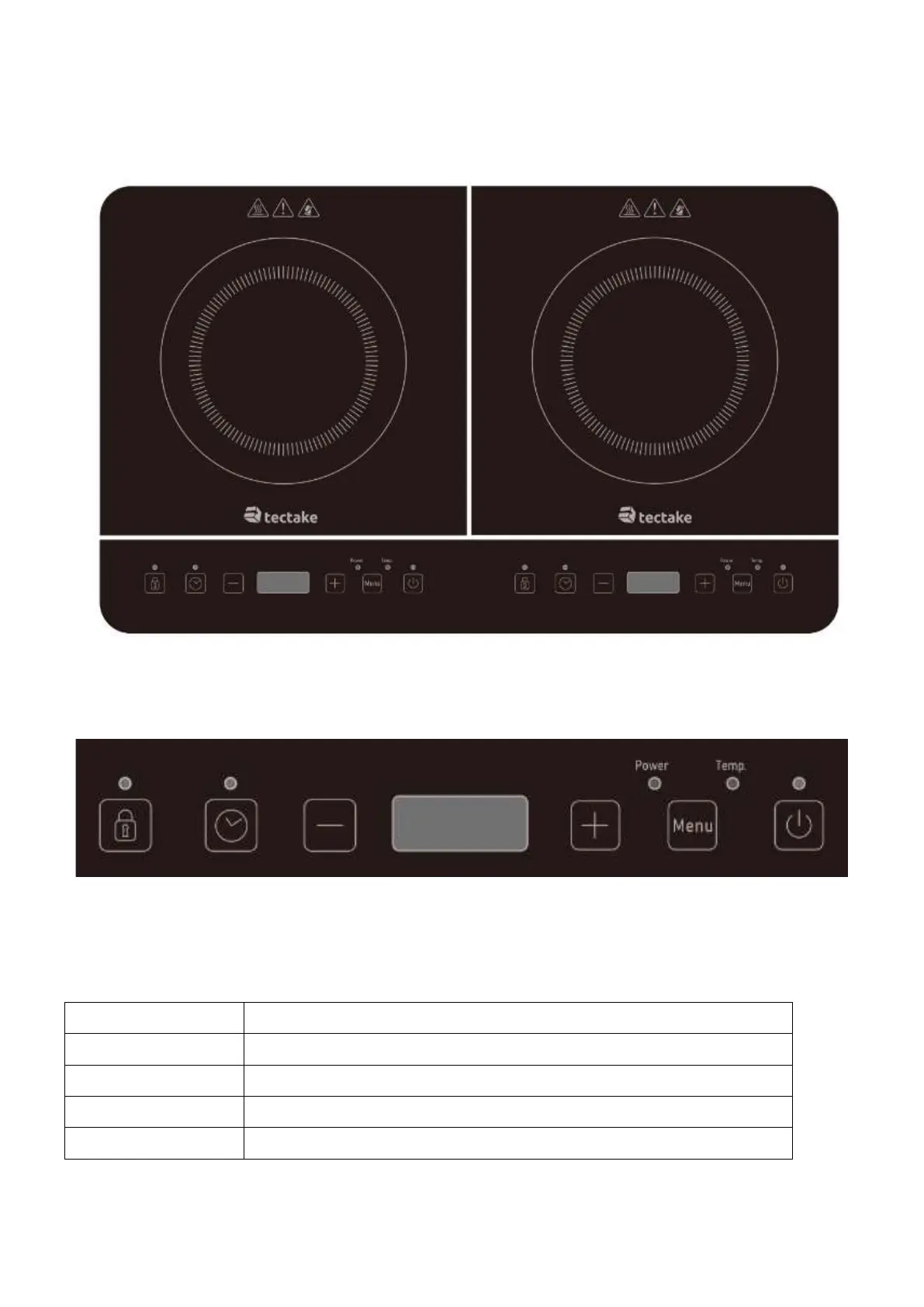 Menu button Start the operation of different cooking mode (Power/Temp.).