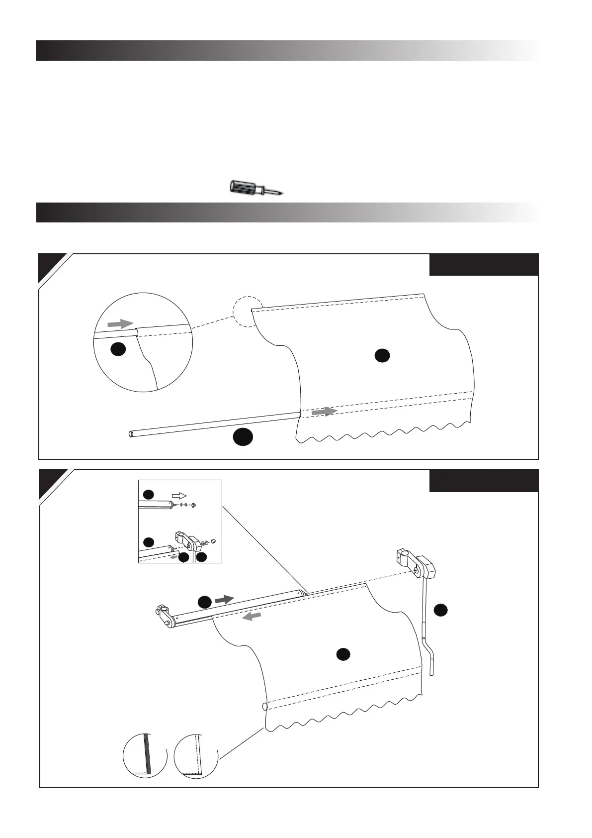 plástico y el dispositivo de protección, y coloque con cuidado el toldo en