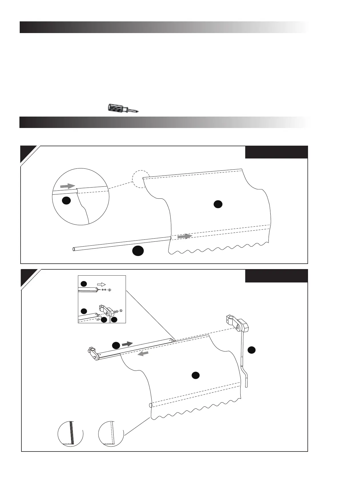 di plastica, ecc. e posizionare con cura la tenda da sole su un lato per evitare
