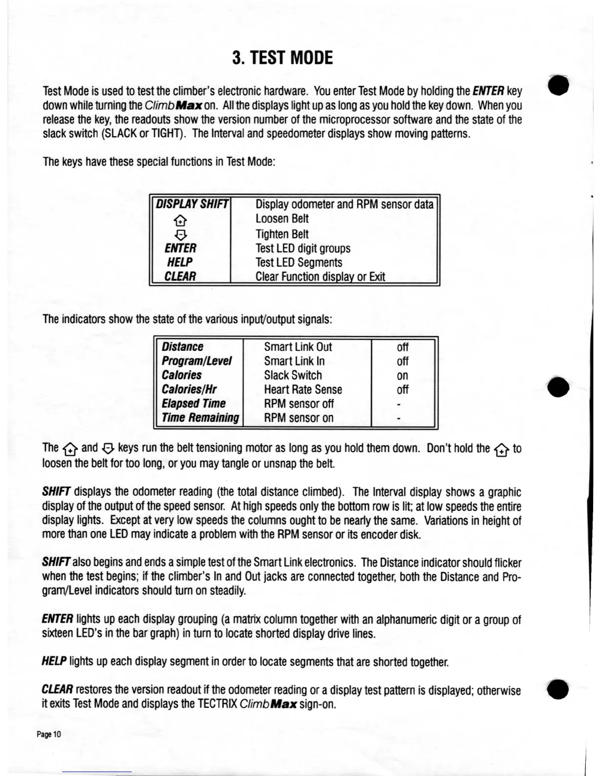 Tectrix Climbmax 150 - Test Mode; System Diagnostic Procedures