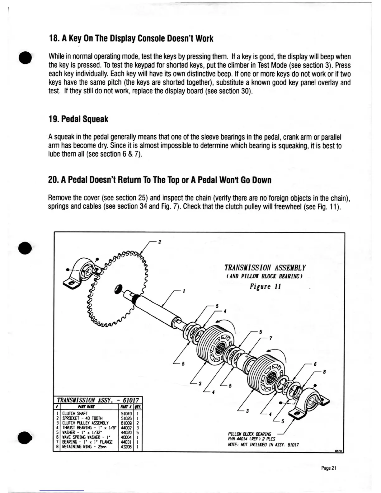 Tectrix Climbmax 150 - Akey on the Display Console Doesnt Work; Pedal Squeak; Apedal Doesnt Return to the Top or Apedal Wont Go down