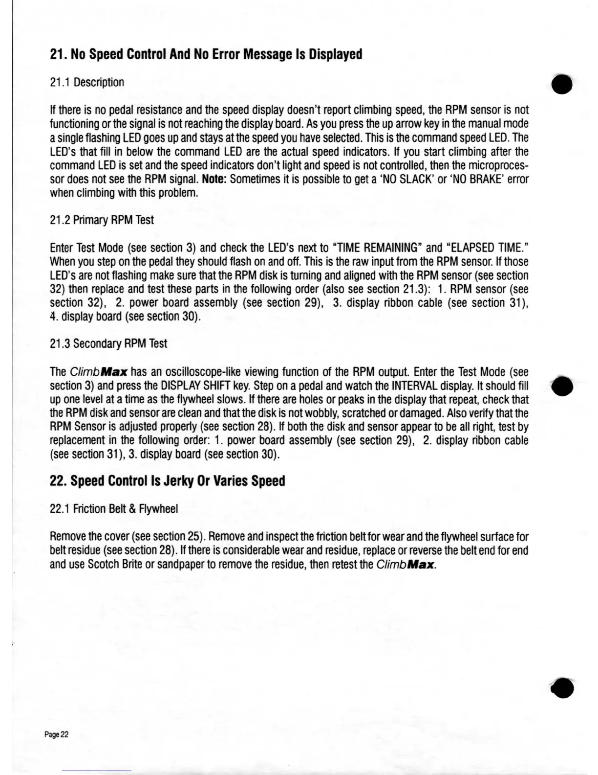 Tectrix Climbmax 150 - No Speed Control and no Error Message Is Displayed; Speed Control Is Jerky or Varies Speed