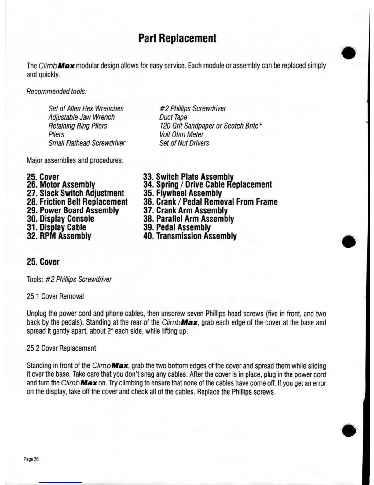 Tectrix Climbmax 150 - Part Replacement; Cover and Electronic Components