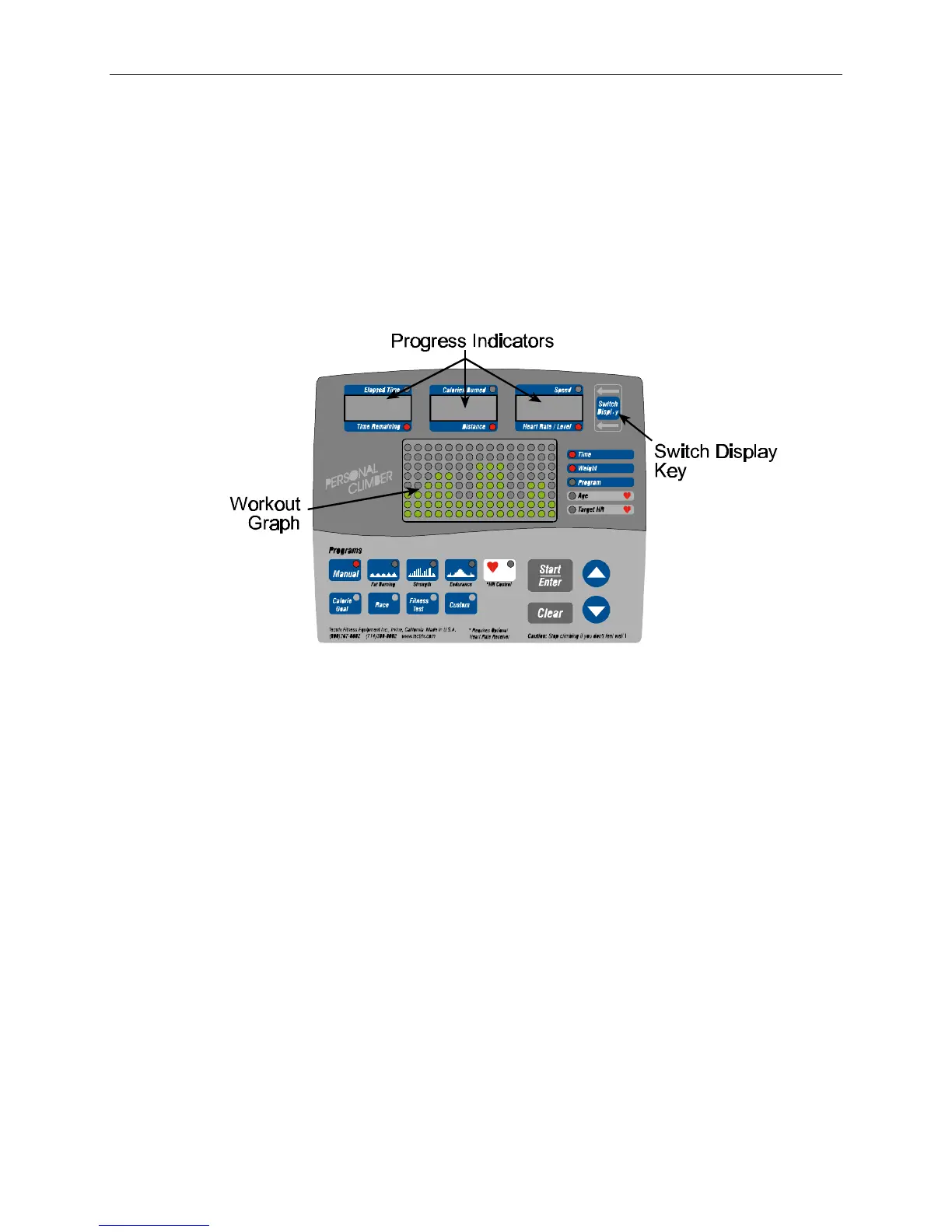 During your workout, the Personal Climber console keeps you continuously updated about your