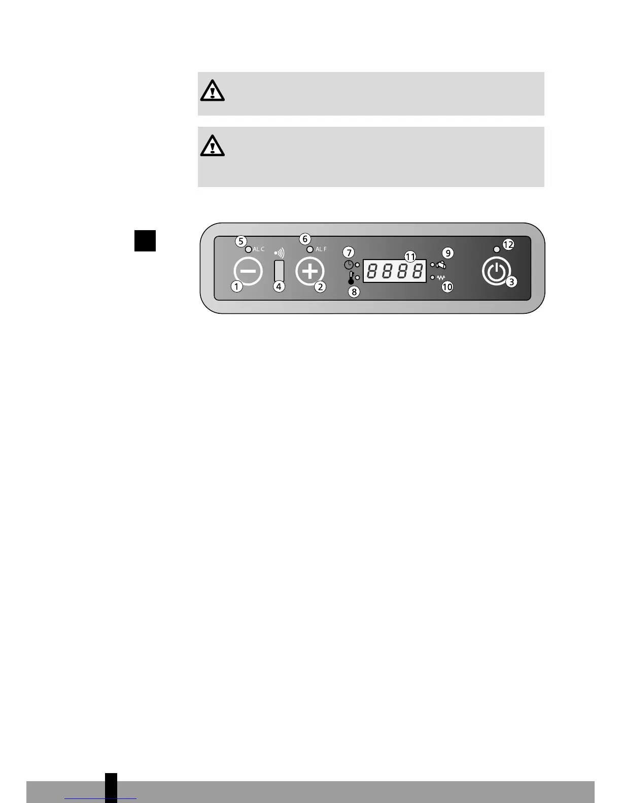 LED8: Zeigt an, dass die eingestellte Temperatur erreicht wurde. Der Text