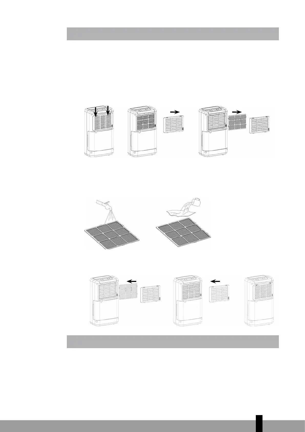 1. Abrir la rejilla de entrada y extraer el filtro de aire.