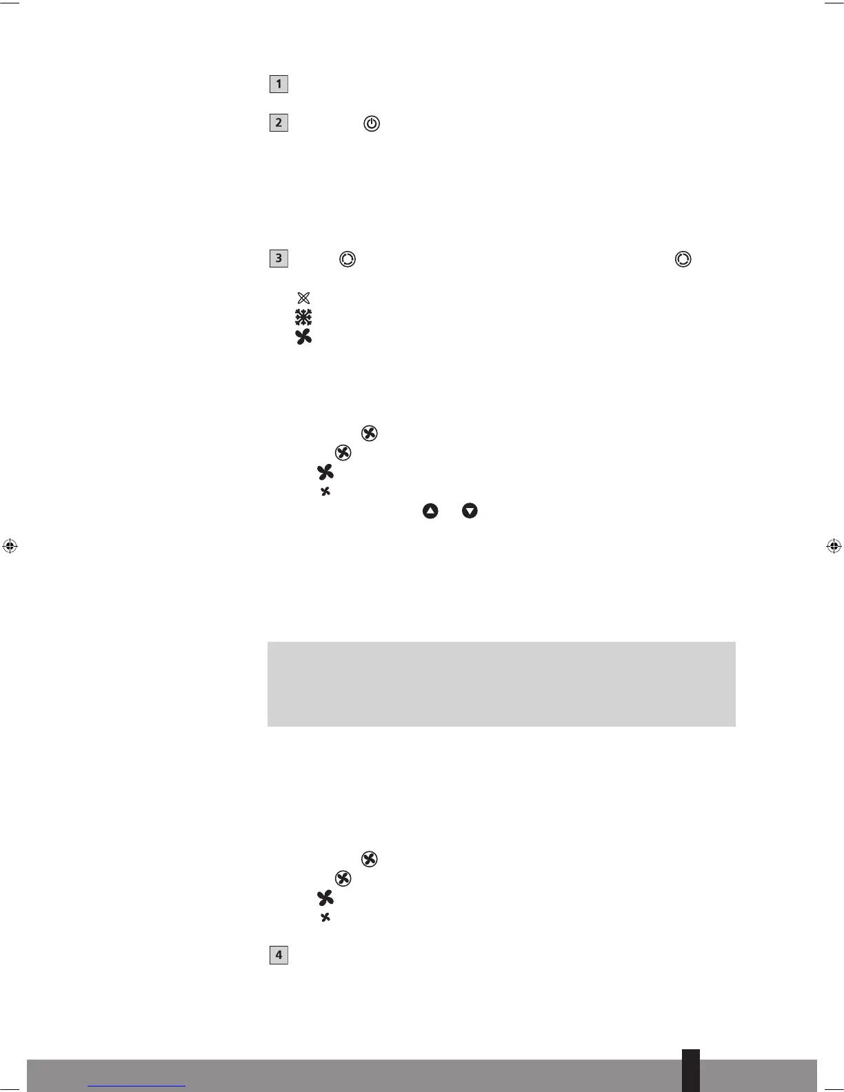 • Metde -toets kunt u de gewenste ventilatorsnelheid instellen. Door op