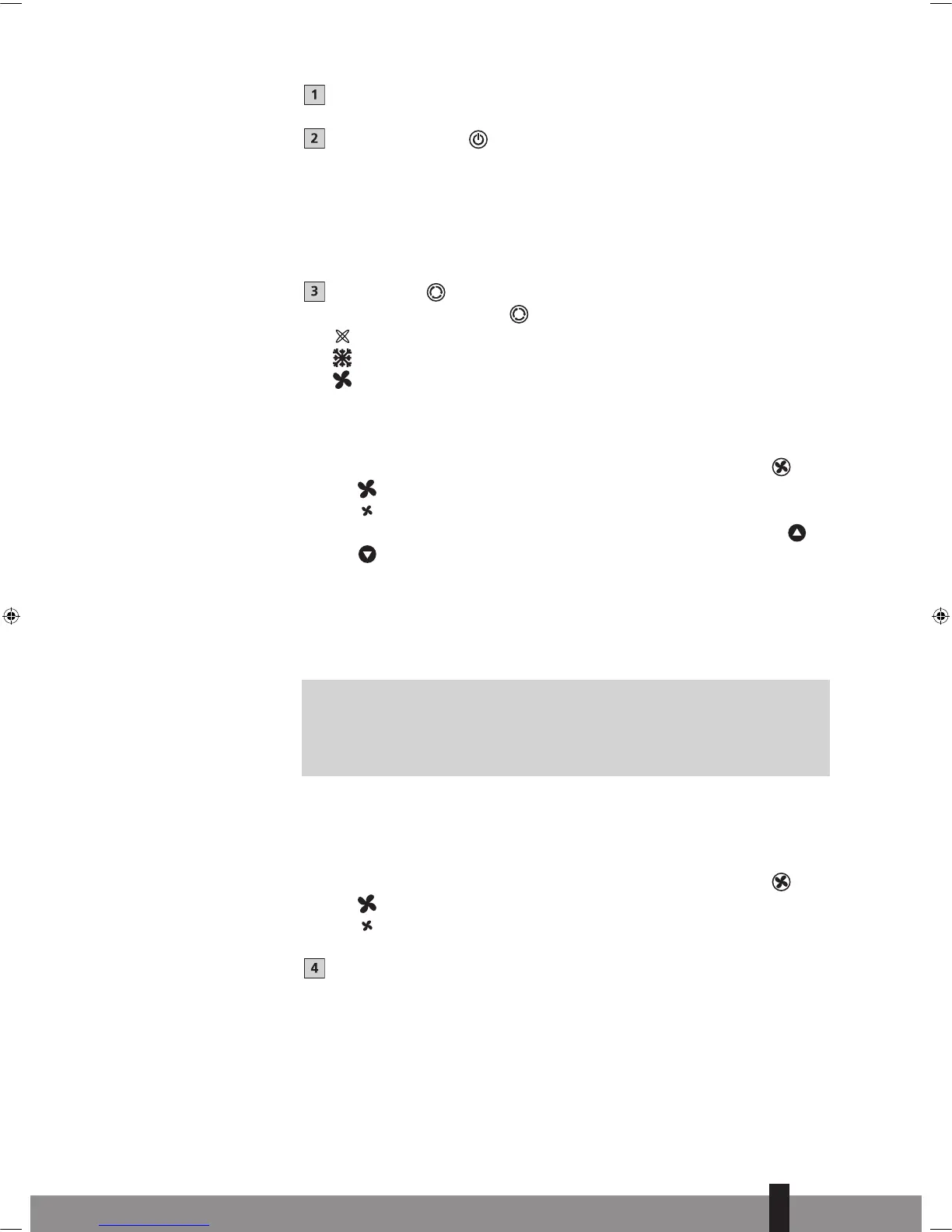 I det här läget cirkulerar enheten endast luft, enheten kyler inte och avfuktar