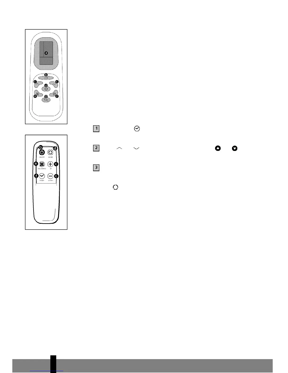 d. Modusknap (vælg Aircondition, Ventilator eller Affugter)
