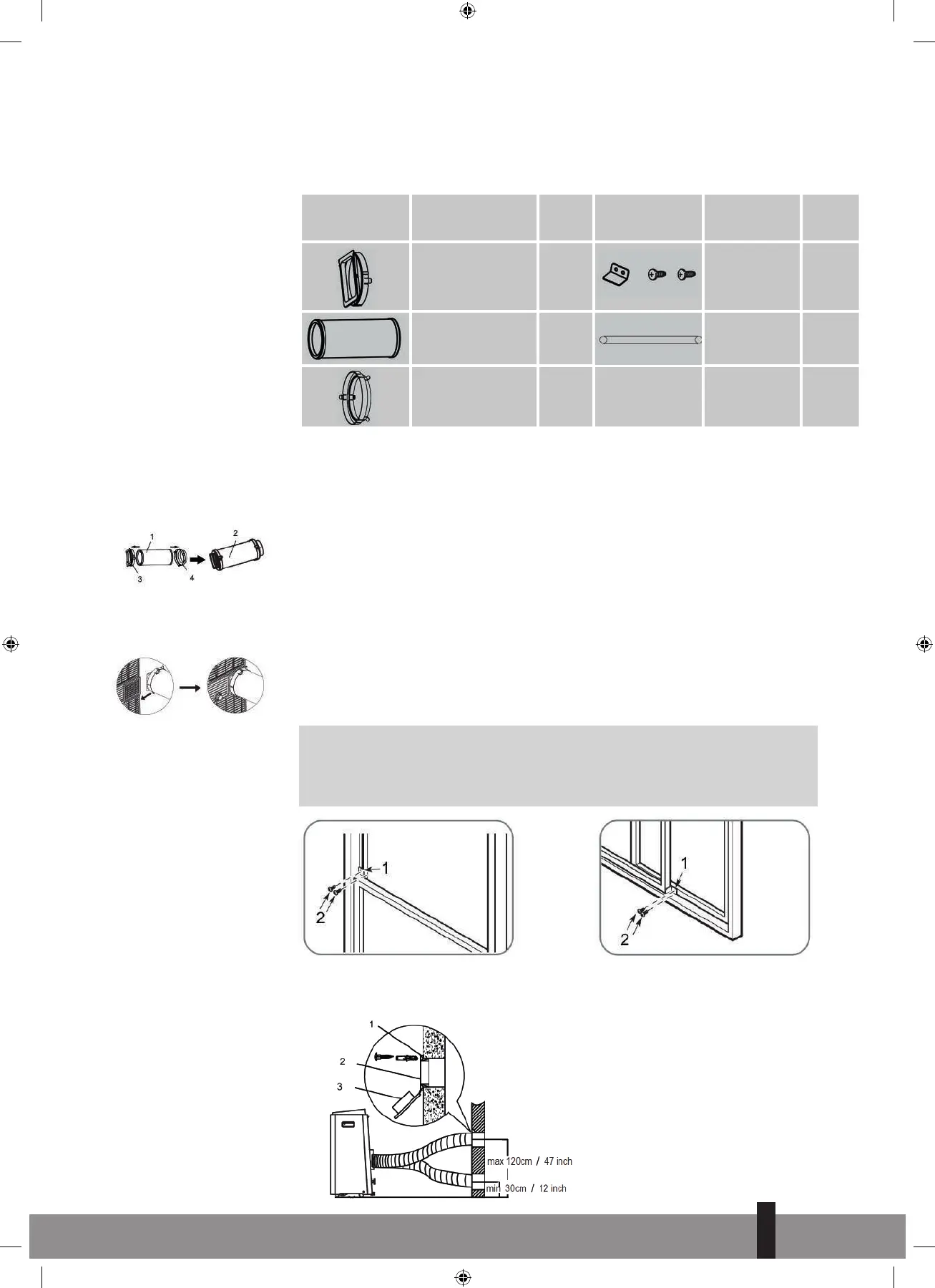 Når luftafledningsslangen og det justerbare vinduessæt er forberedt,