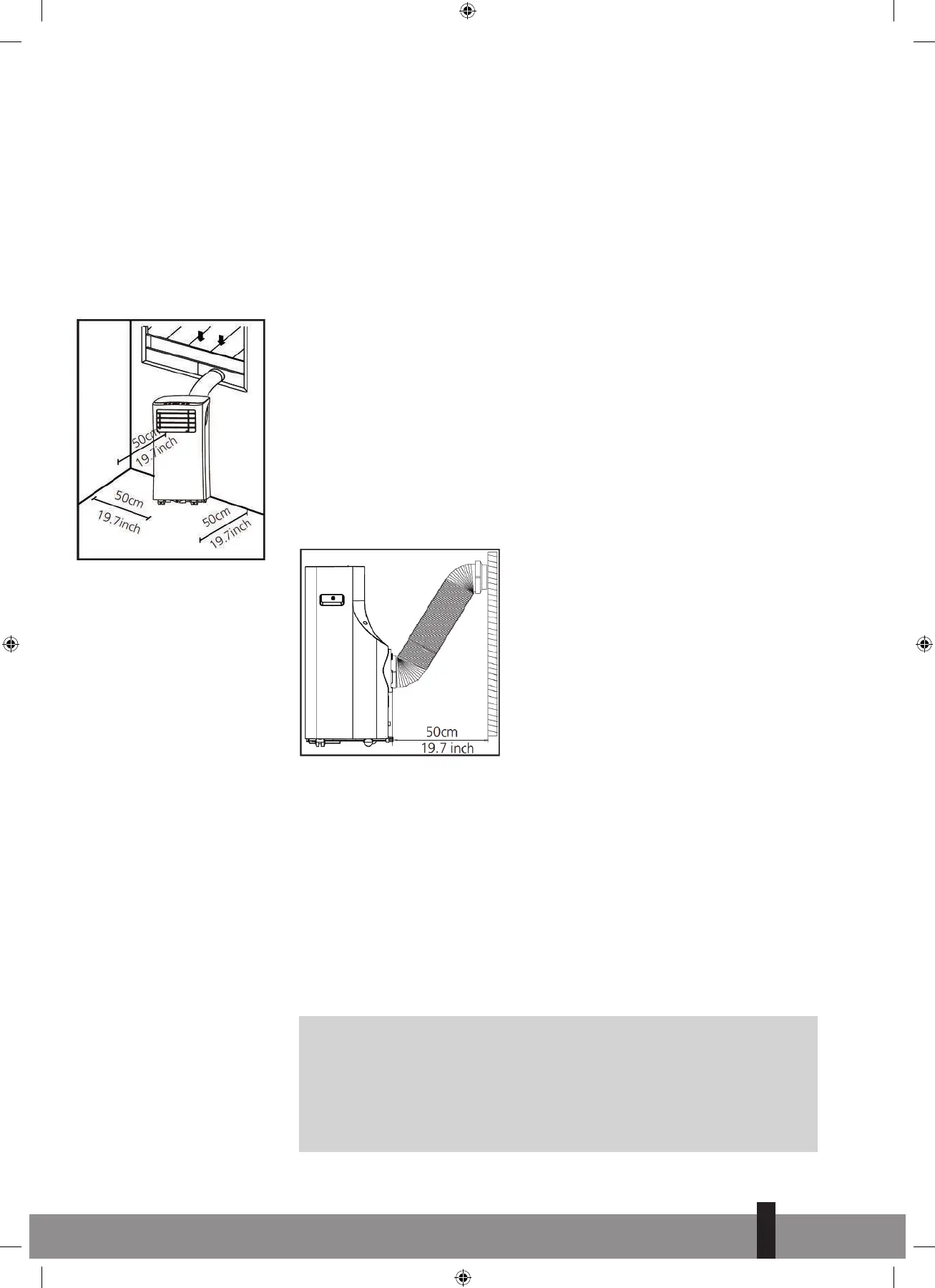 znajdować się w odległości co najmniej 50 cm (19,7”) od przeszkód.