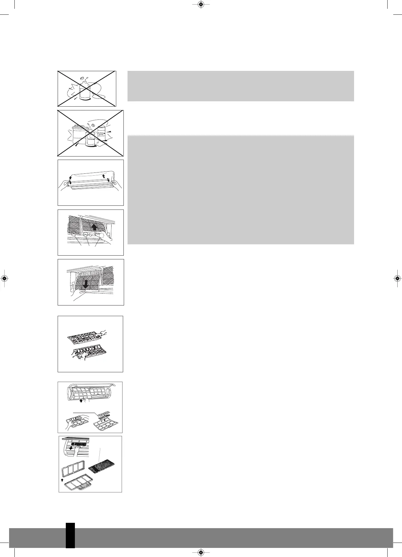 Verstopte luchtfilters verminderen het effect van koeling van dit apparaat. Maak