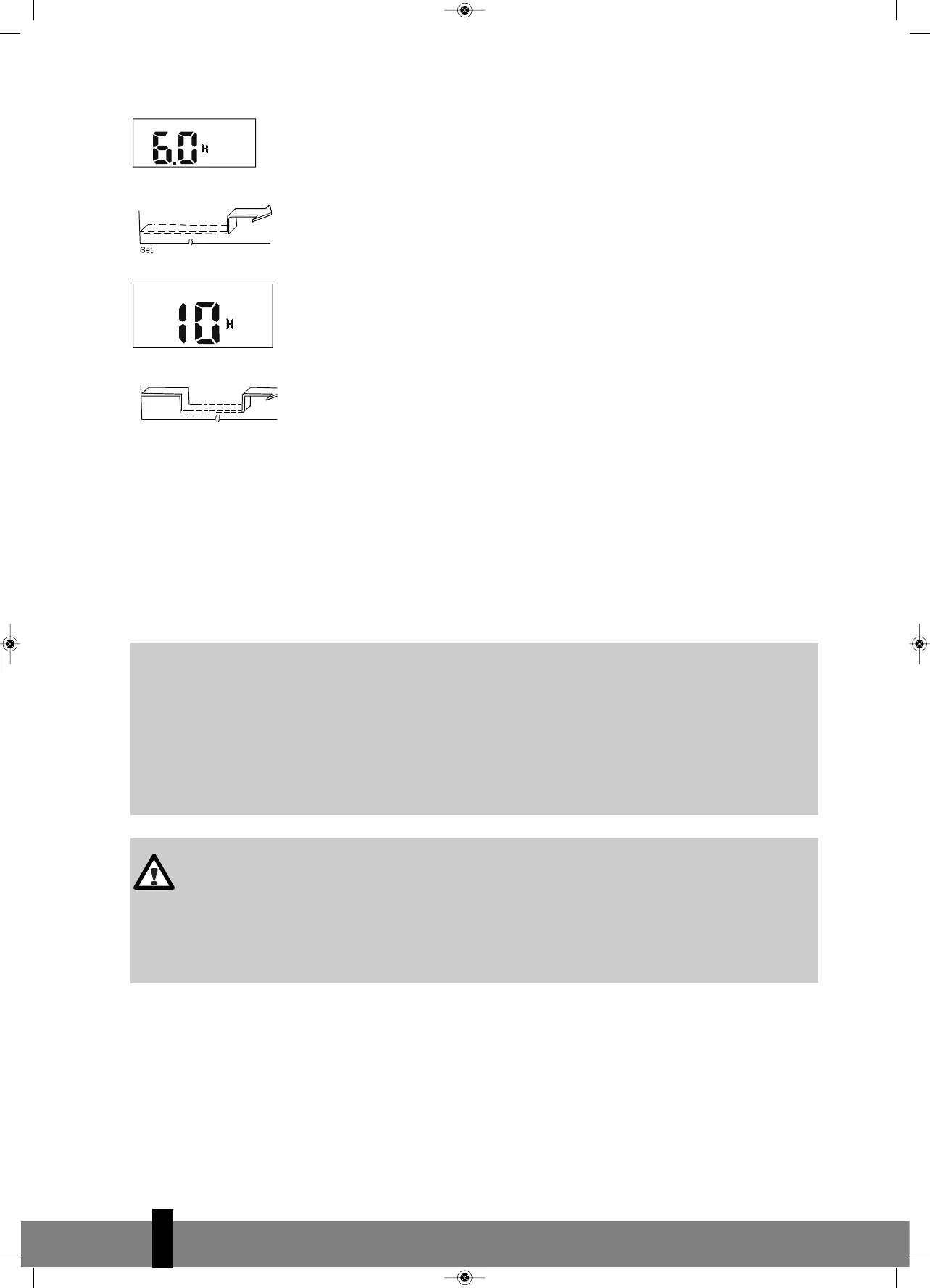 automatisk med 30 min (hvis den indstillede tid er under end 10 timer) eller med 1 time (hvis
