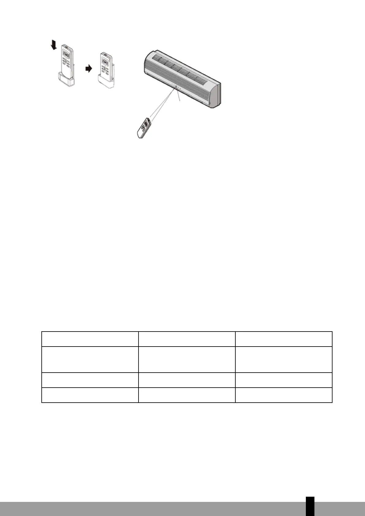 Com o controlo remoto apontado para o ar condicionado.