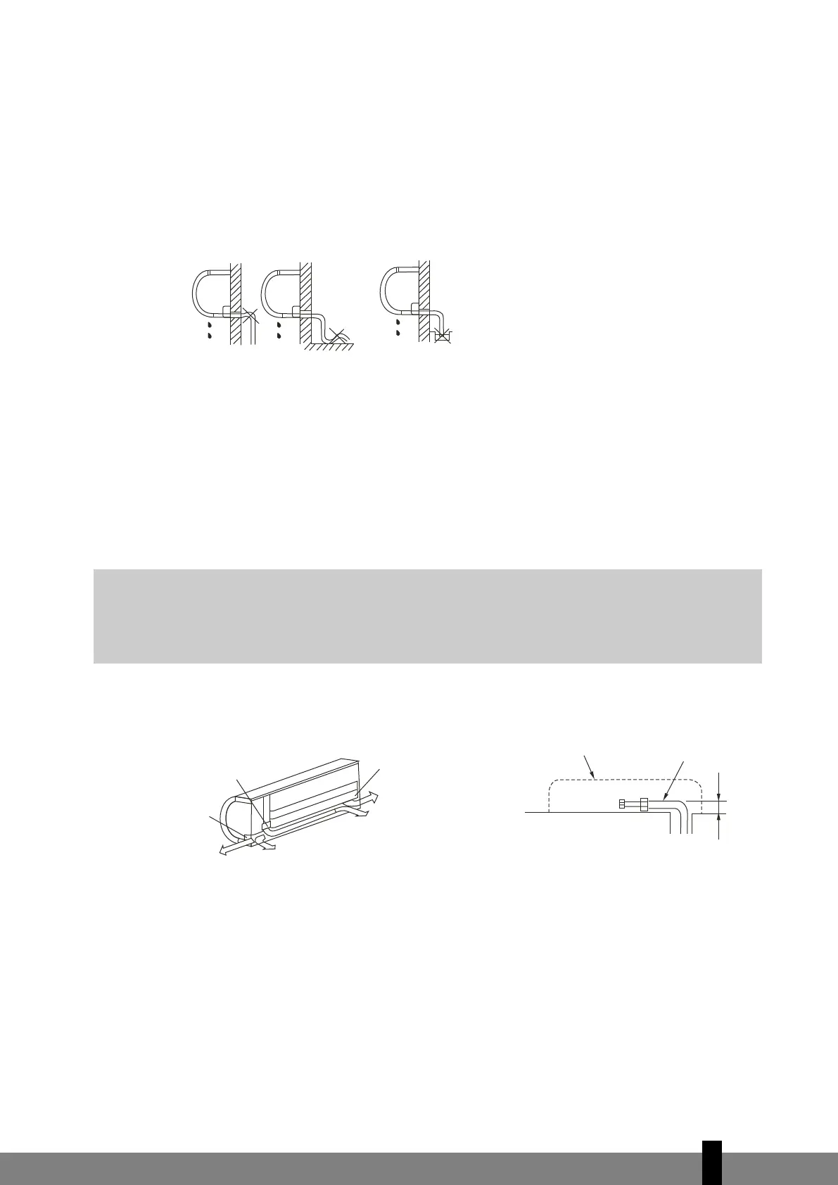 1. Always run the drain hose sloping downward all the way. Do not install the drain hose as illustrated