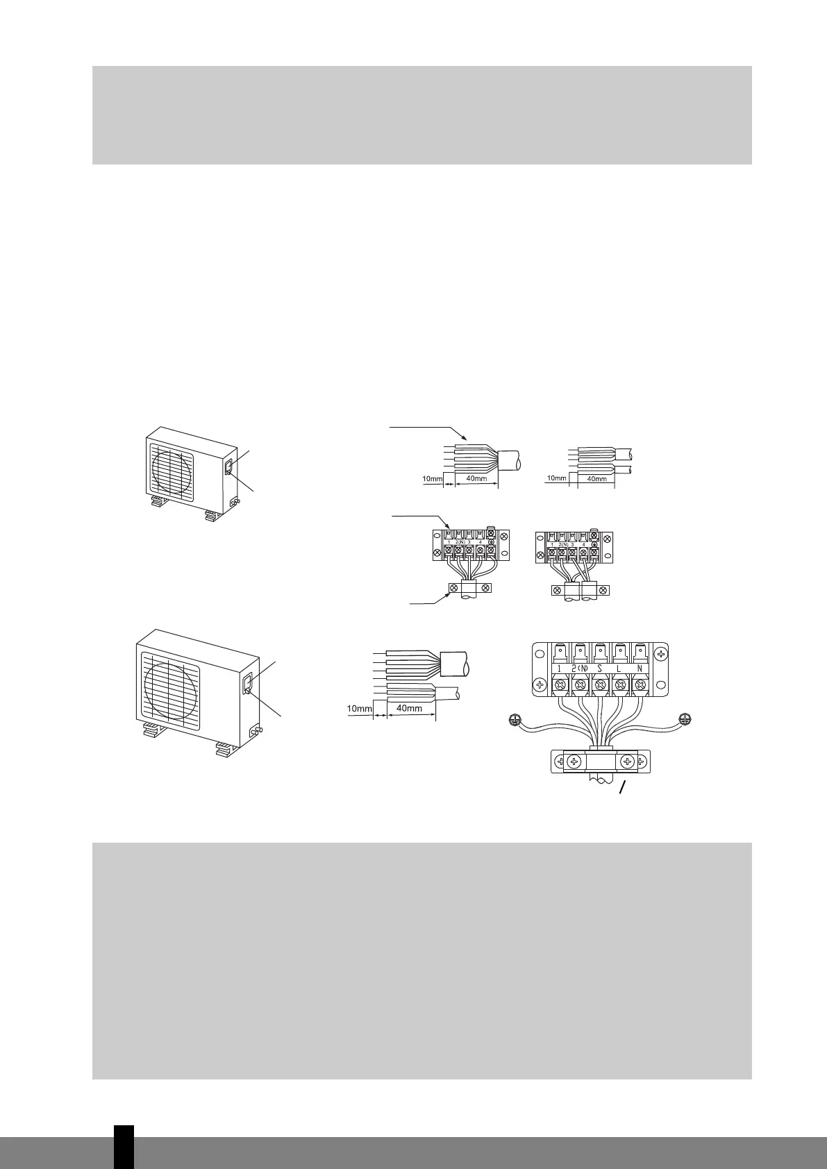 elektrische kabel worden verbonden met de klem aangeduid met code “L” op de buitenunit.
