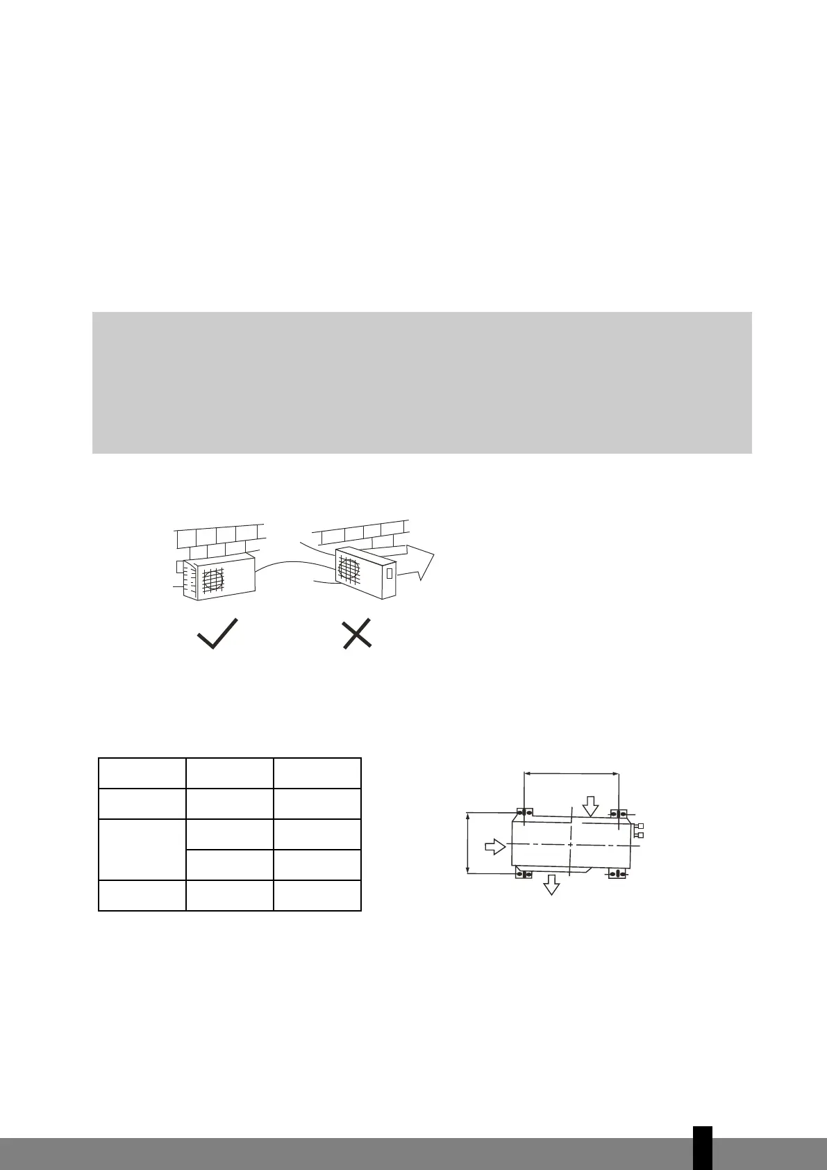 • Szczególnie na obszarach wietrznych, jednostkę należy zamontować tak, aby ograniczyć wchodzenie wiatru.