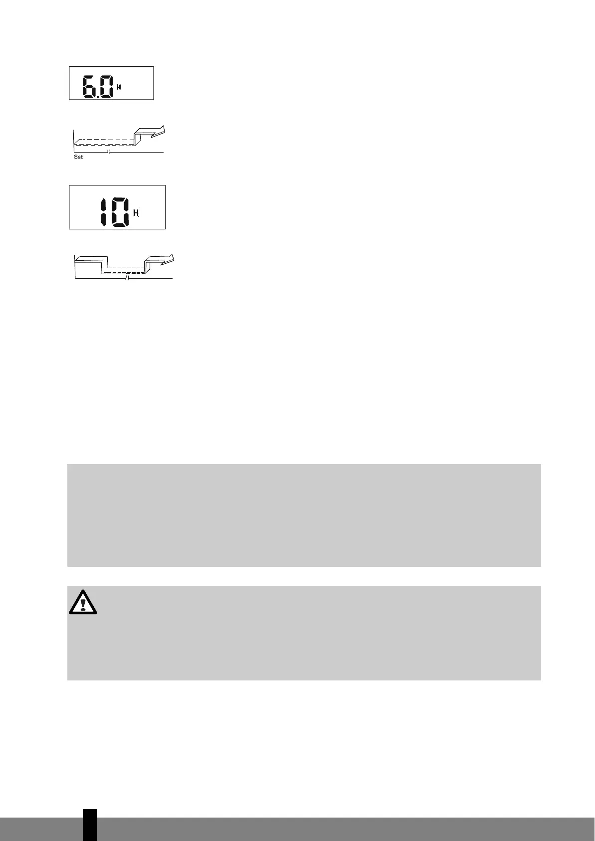 automatisk med 30 min (hvis den indstillede tid er under end 10 timer) eller med 1 time (hvis