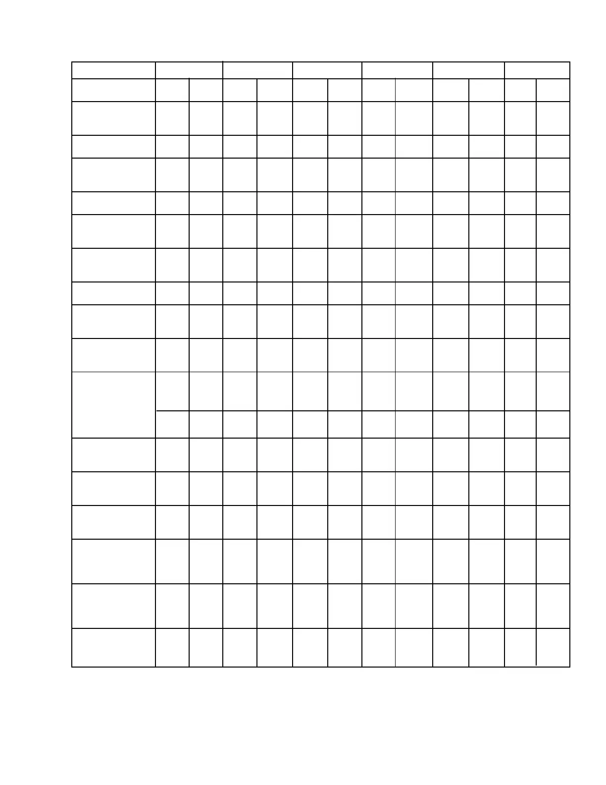 TABLE OF SPECIFICATIONS