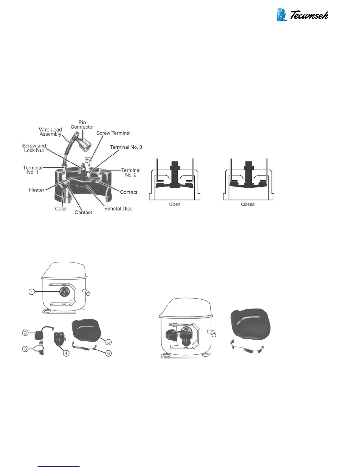 When firmly attached to the compressor housing, the thermal protector device (See Figure 3-8)