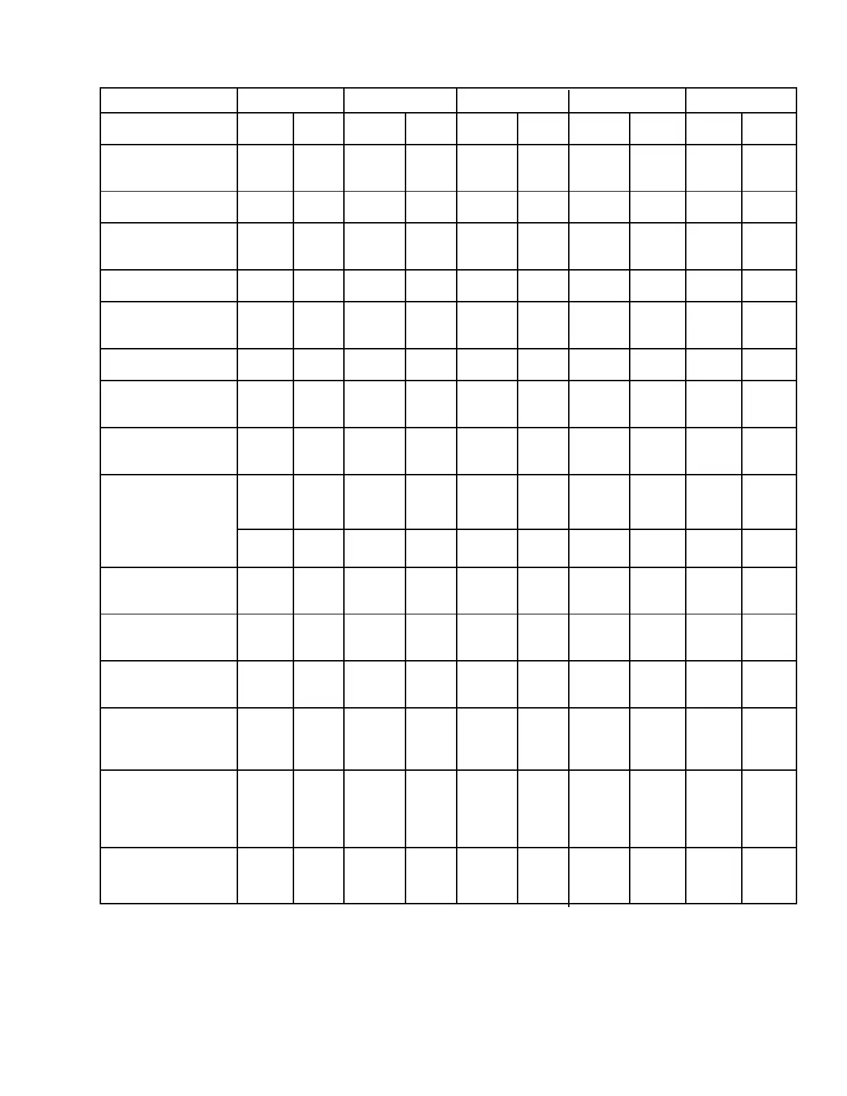 TABLE OF SPECIFICATIONS