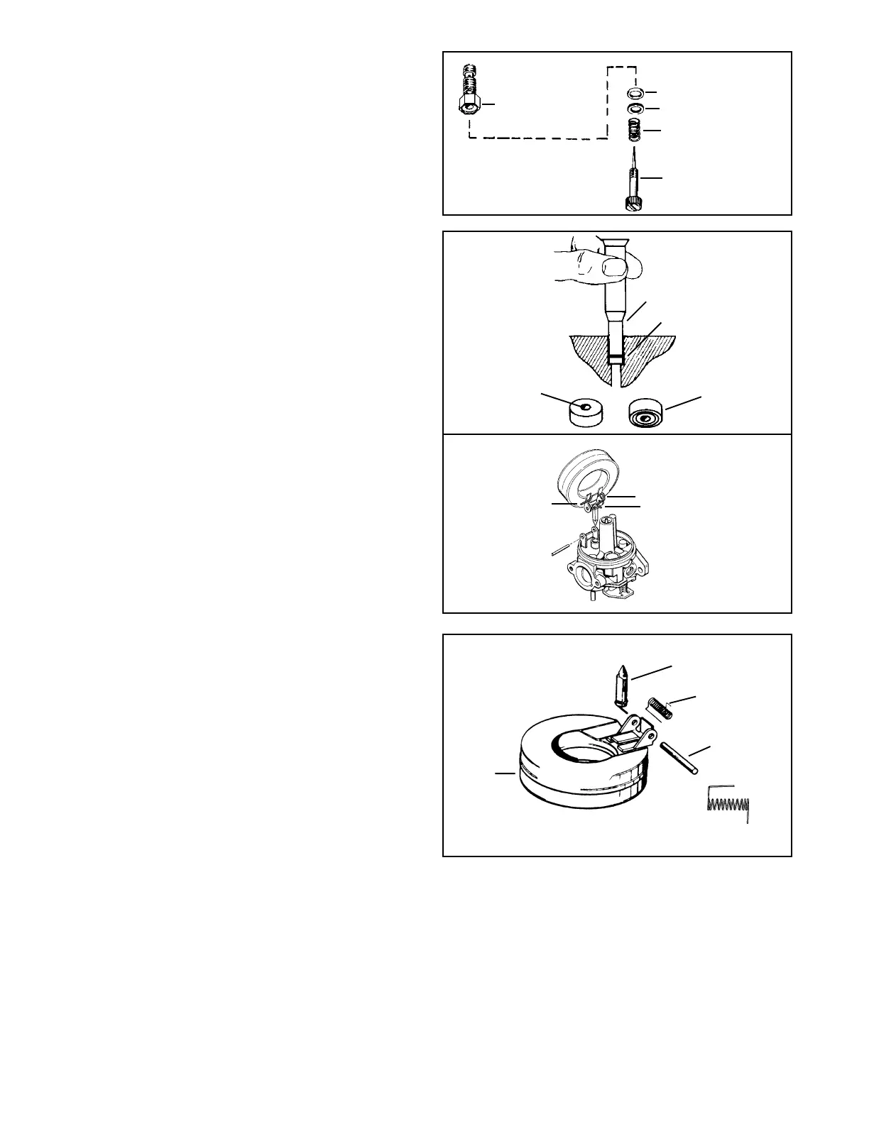 Reposition the float and needle assembly. Using the