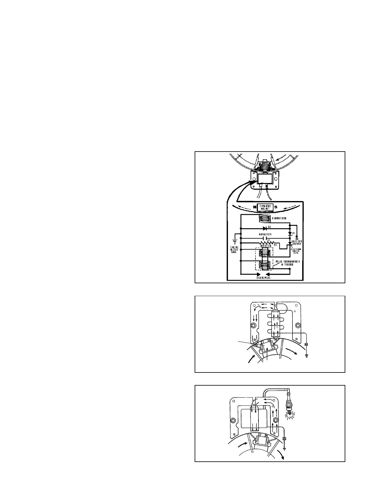 The solid state ignition system consists of a flywheel magnet and key, charge coil, capacitor, a silicon controlled rectifier,