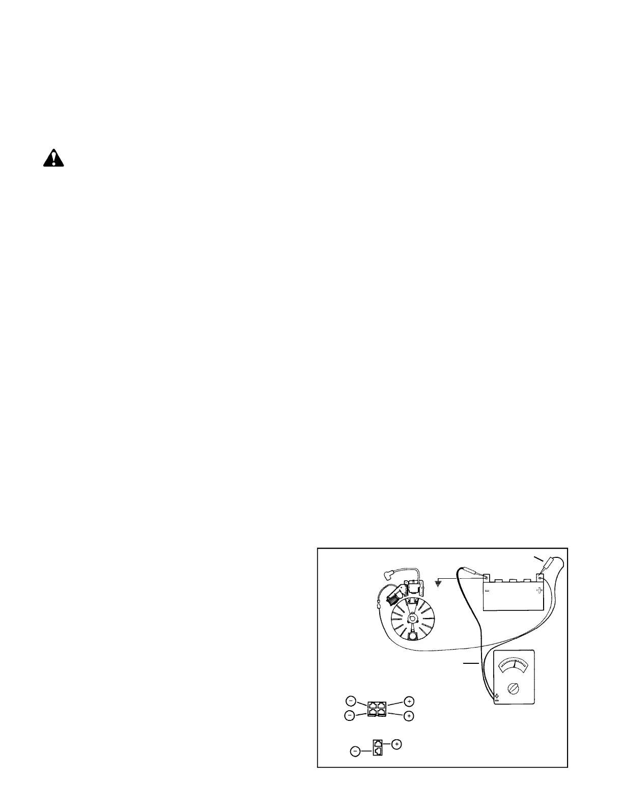 Consult a Tecumseh dealer or a parts manual to identify the charging system. To make many of the tests it is necessary