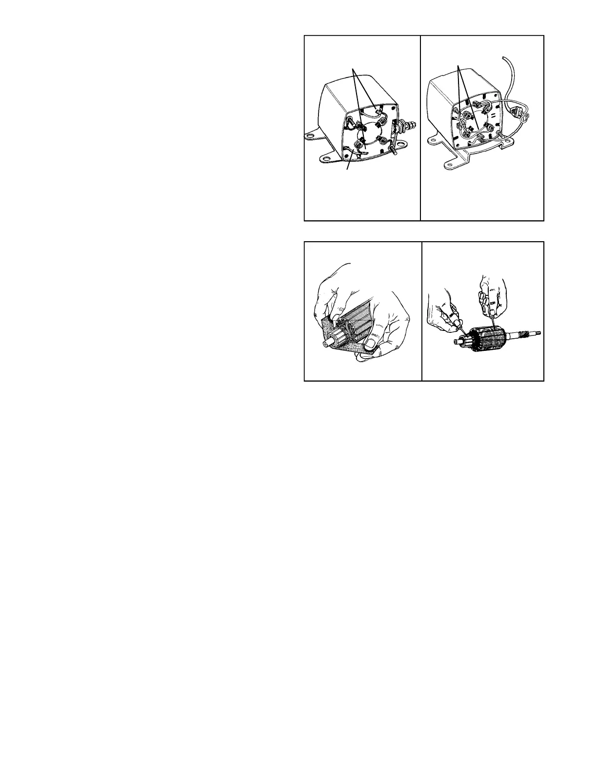 dirt off all starter parts. Scrape the insulating varnish off the last 1/2" (12.7 mm) of the solid field wires.